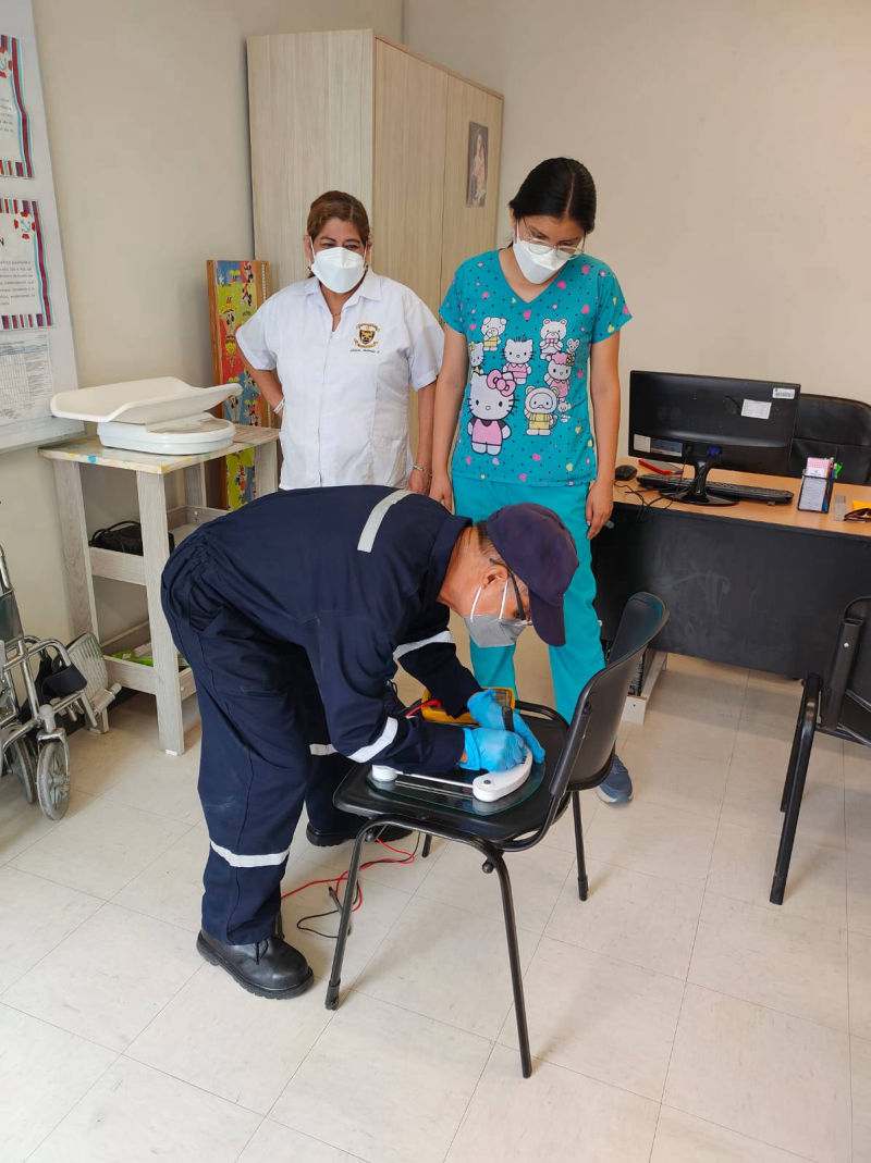 Personal altamente calificado del Centro Médico Naval – CEMENA, realizó la revisión de los equipos de enfermería requeridos para la atención de los estudiantes de la Institución Educativa Inicial Divino Niño Jesús. Dicho personal verificó el estado de los equipos: balanza mecánica, digital, tensiómetros, estetoscopios, infantometró, entre otros; además se realizó el respectivo mantenimiento y calibración de dichos equipos médicos.